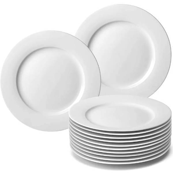 Beyaz yuvarlak porselen yemek tabağı restoran servis aile yemek takımı